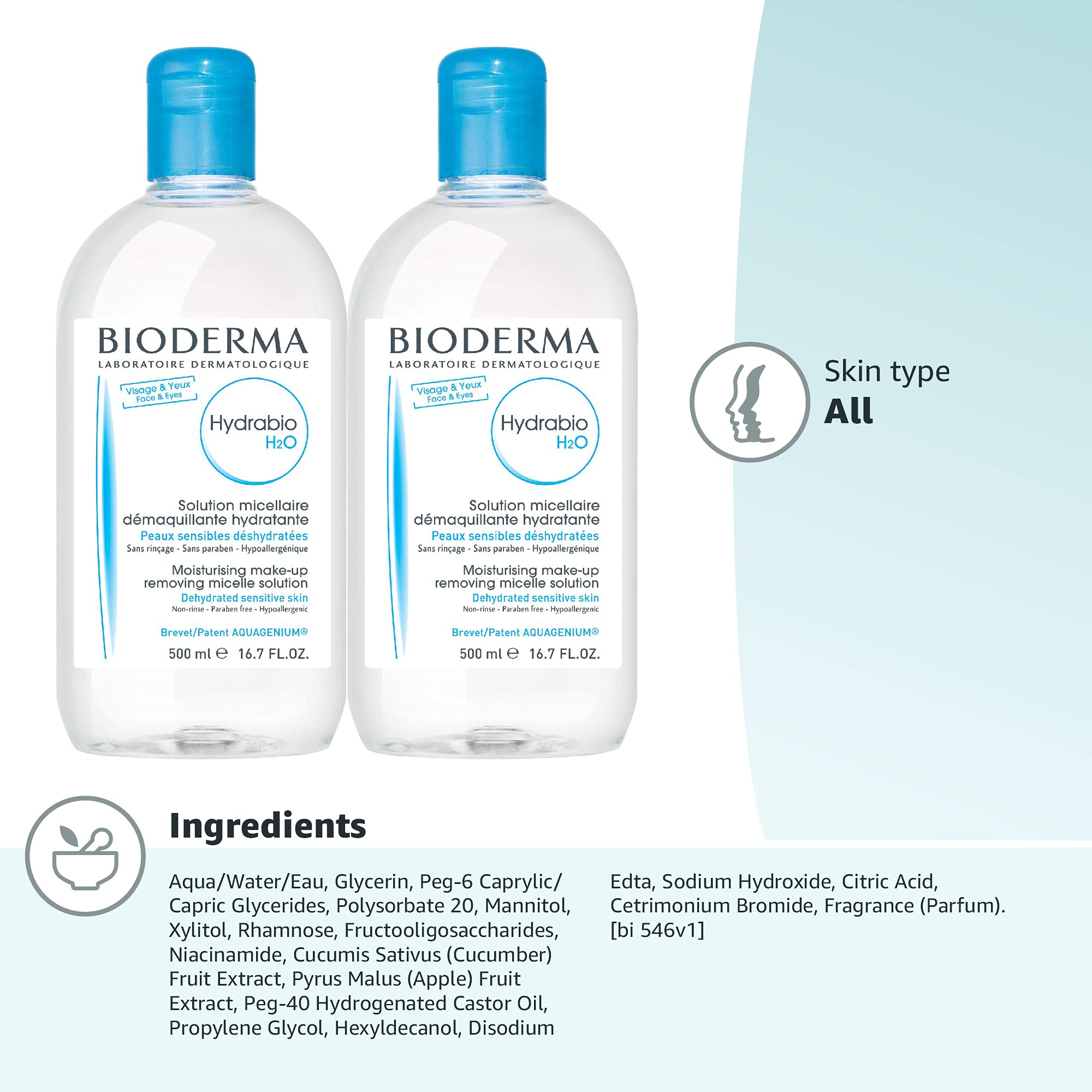 Bioderma Hydrabio DUO H2O Micellar Water Cleansing and Make-Up Removing for Dehydrated Sensitive Skin, 33.4 Fl Oz