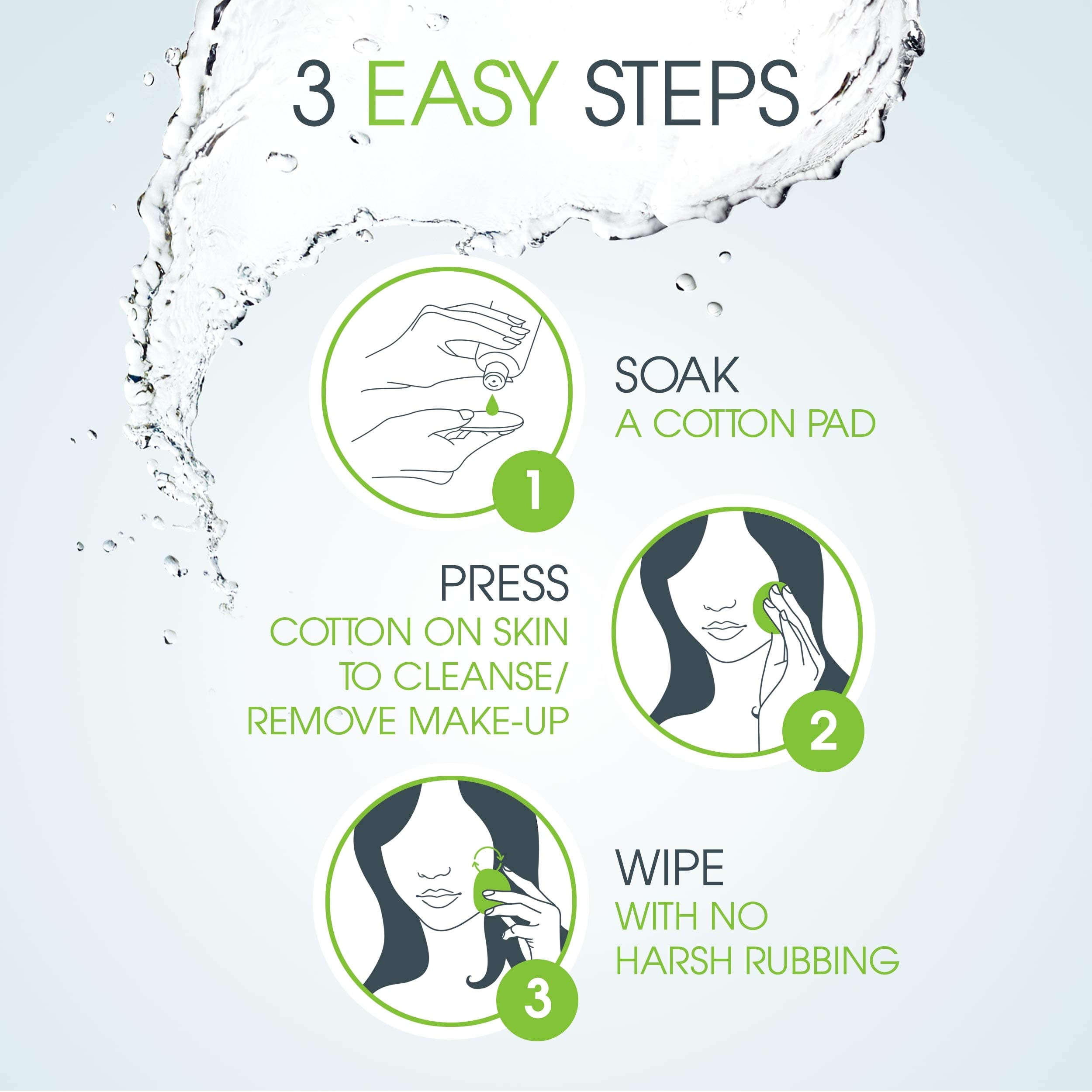 - Purifying, dermatological micellar water that cleanses the skin by effectively removing dirt and makeup.