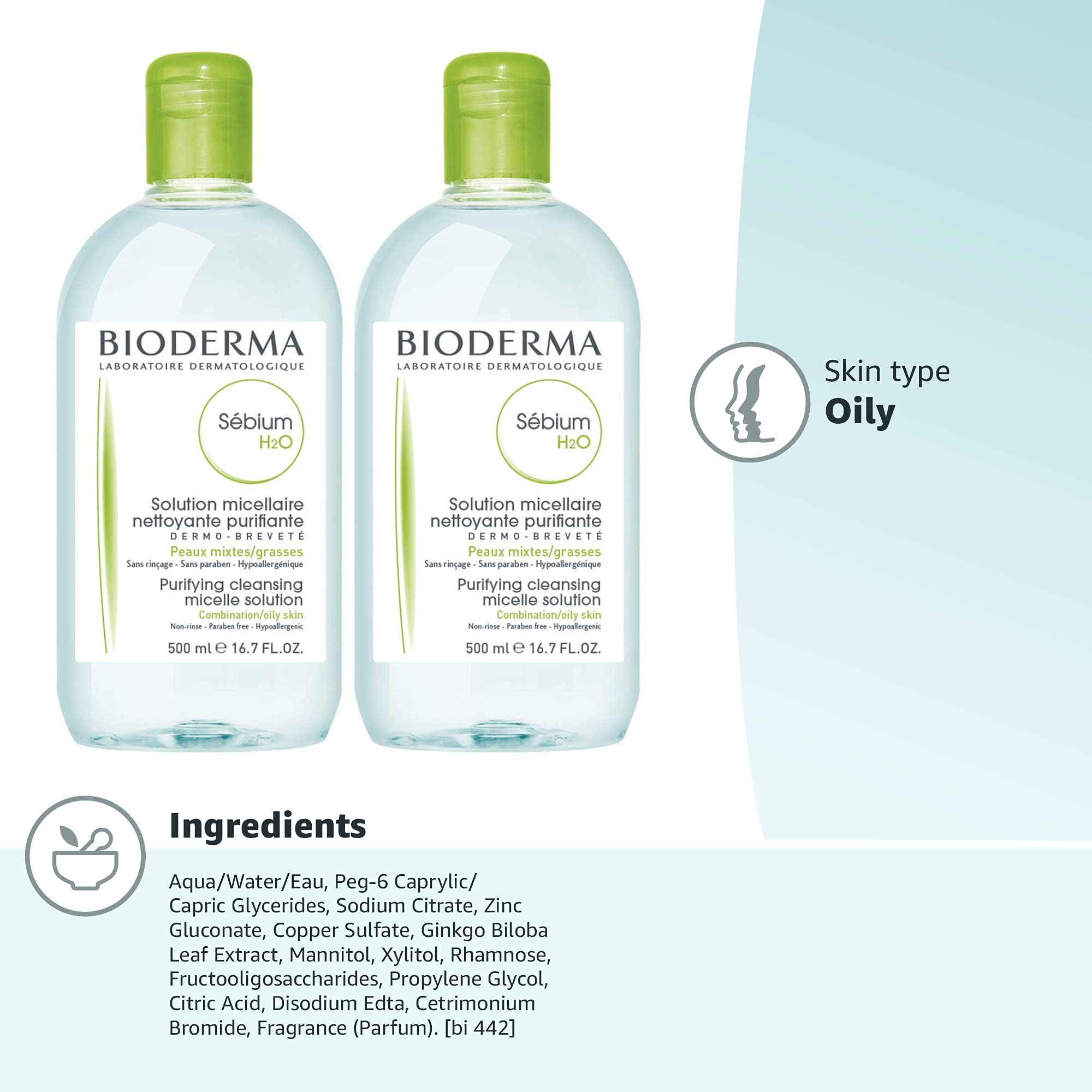 Bioderma – Sébium H2O – Micellar Water – Facial Cleanser and Makeup Remover – Face Cleanser for Combination to Oily Skin